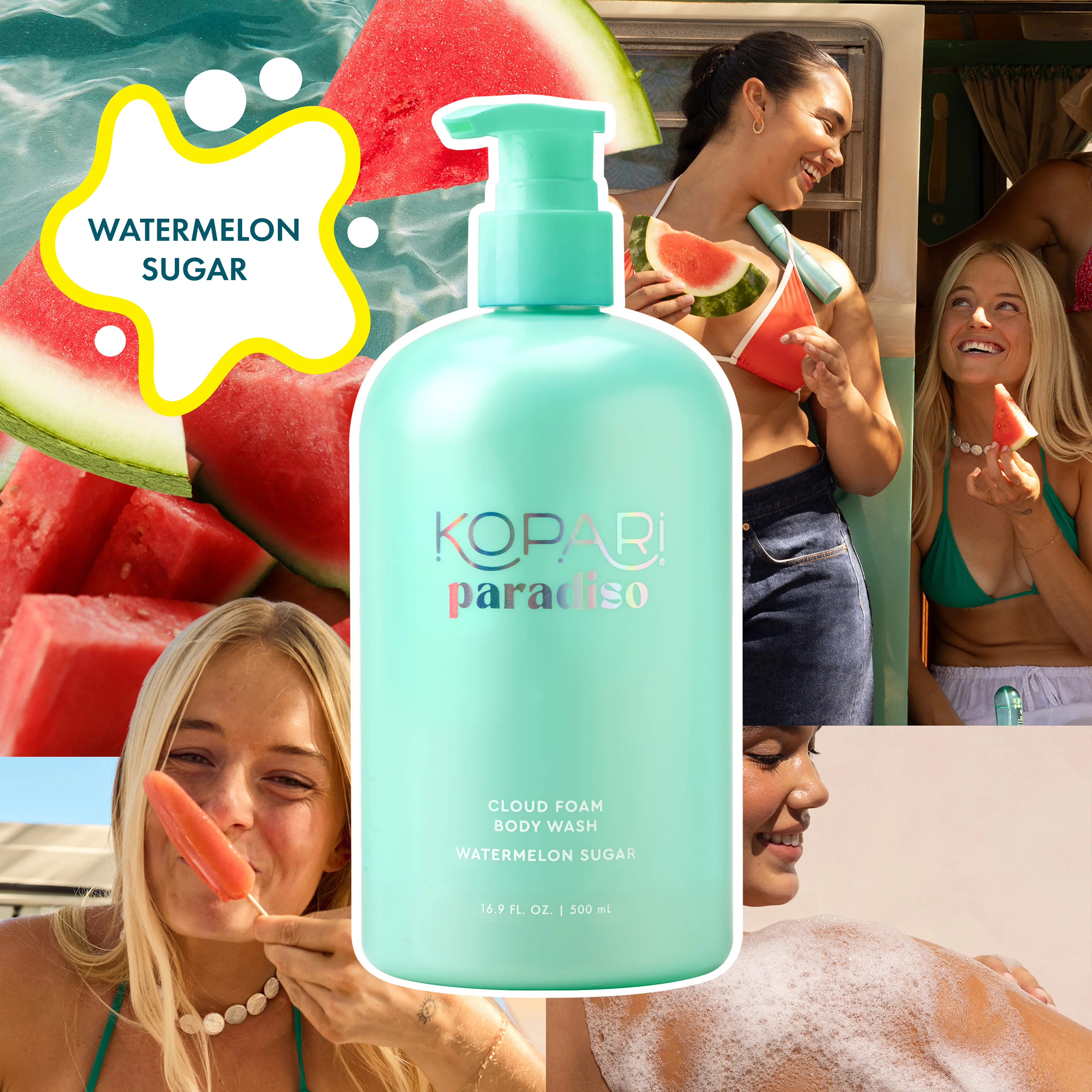 Watermelon Sugar: Juicy watermelon, peach, apple, and kiwi collide for a burst of fruity sweetness that’s fresh, bright, and straight-up refreshing. Like a sweet summer sorbet in a wash.